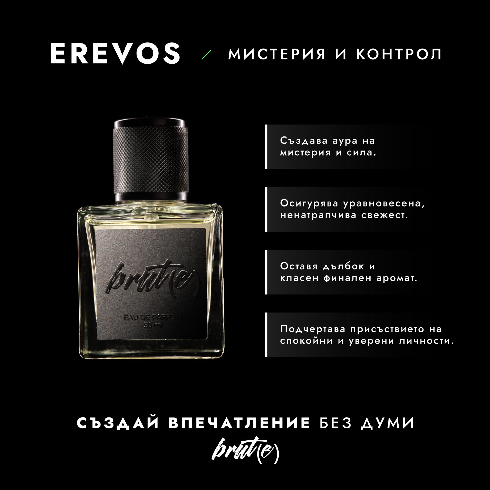 Erevos е ароматът на мълчаливата сила – на човека, който не говори много, но когато го направи, всички слушат.